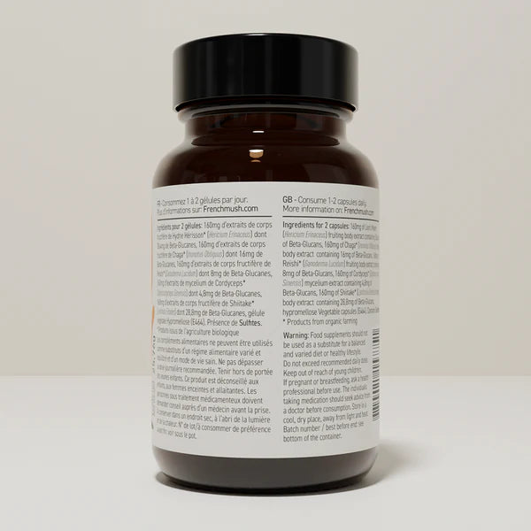Una poderosa combinación de los cinco hongos medicinales más reconocidos: Reishi, Cordyceps, Shiitake, lion`s mane y Chaga.