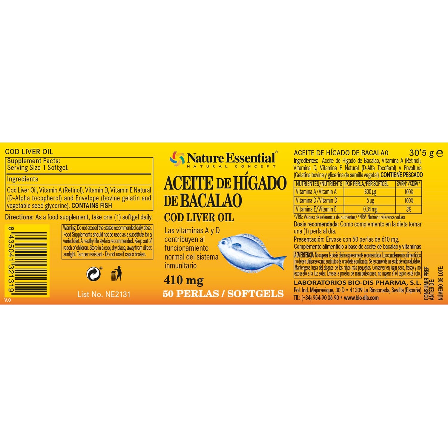 NATURE ESSENTIAL - Aceite de hígado de bacalao 410 mg. 50 perlas