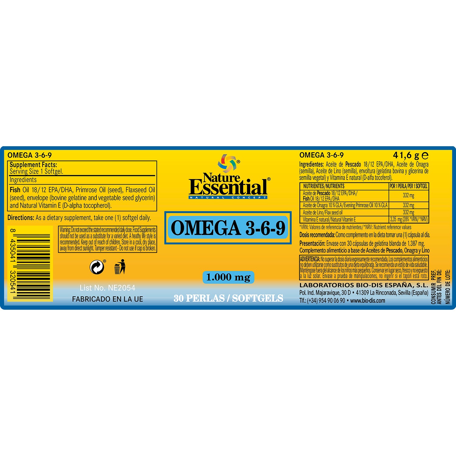 NATURE ESSENTIAL - Omega 3-6-9 1000 mg. 30 perlas