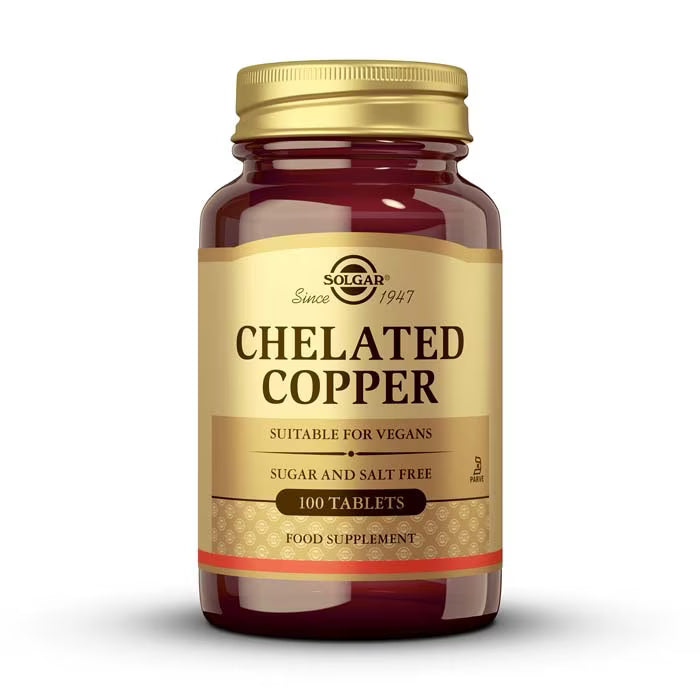 El Cobre Quelado de Solgar® aporta cobre en una forma quelada exclusiva y de fácil absorción que mejora la tasa de absorción y utilización de los minerales.