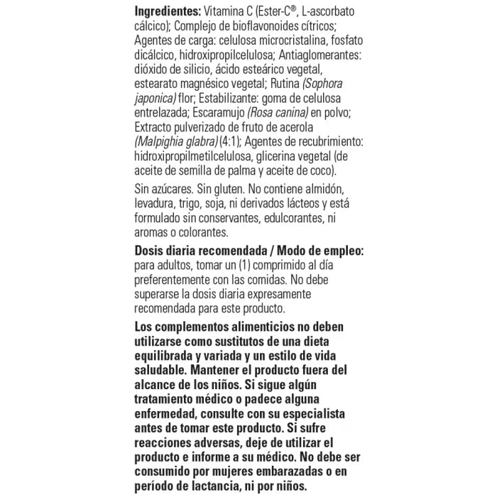 Ester-C® Plus está formulado de forma exclusiva por Solgar® y proporciona una vitamina C ampliamente investigada con un pH neutro (no ácida). Además, Ester-C® Plus contiene los metabolitos que se encuentran de forma natural con la vitamina C en la naturaleza. Se utiliza un proceso de elaboración especial para formar un complejo único de metabolito ascorbato cálcico. Por su caracter no ácido, es mejor tolerada que otras presentaciones de vitamina C.