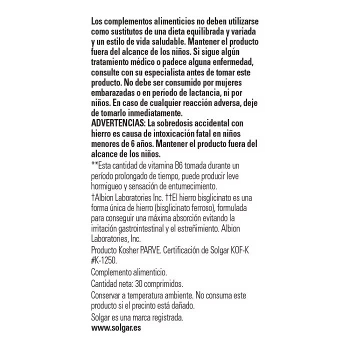 • La sobredosis accidental con hierro es causa de intoxicación fatal en niños menores de 6 años. Mantener el producto fuera del alcance de los niños.