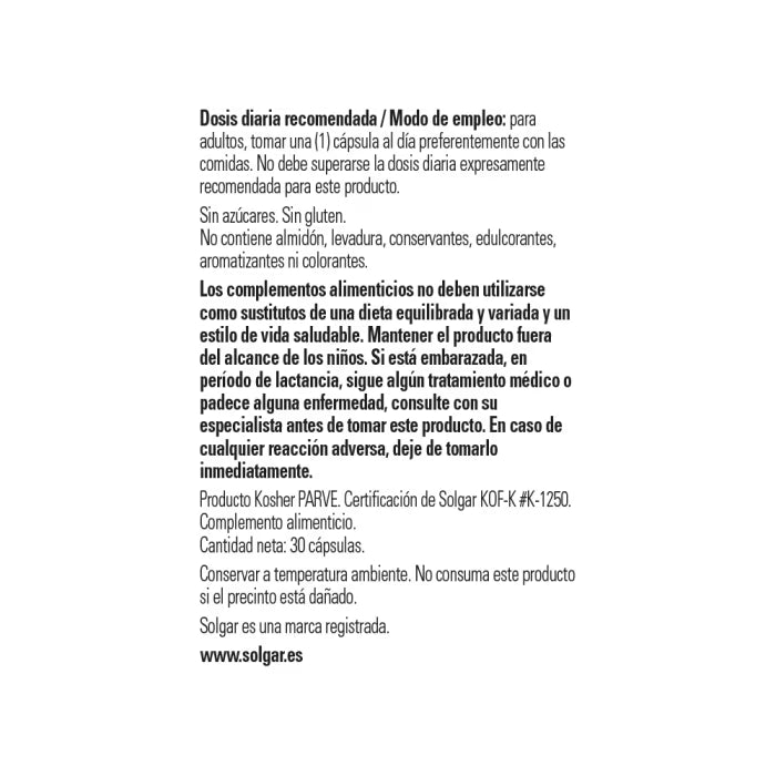 L-glutatión de Solgar proporciona por cápsula 50 mg de glutatión en su forma reducida.