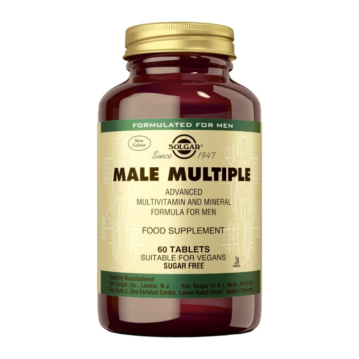Male Multiple de Solgar® es un multivitamínico y mineral diseñado específicamente para el hombre. Un avanzado complejo multivitamínico con una formulación cuidadosamente elaborada y adaptada a las necesidades nutricionales de los hombres.