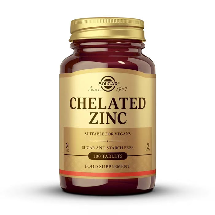 Zinc Quelado de Solgar® aporta zinc de alta calidad en una forma de fácil absorción. Mediante un proceso de quelación el mineral queda “envuelto” con dos moléculas del aminoácido glicina, lo que permite una absorción mejorada a través de la vía de absorción de aminoácidos.