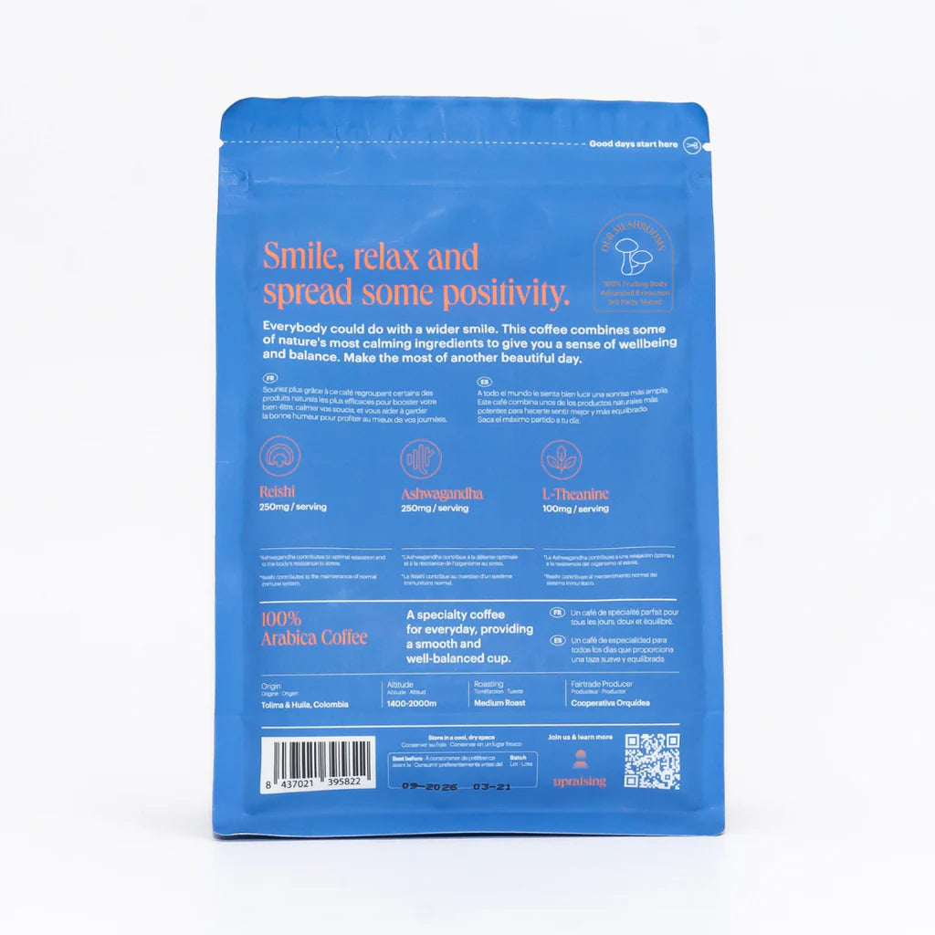 A todo el mundo le sienta bien una sonrisa más amplia. Este café combina unos de los productos naturales mas potentes para mejorar tu ánimo y calmar cualquier preocupación. Saca el máximo partido a tu día.